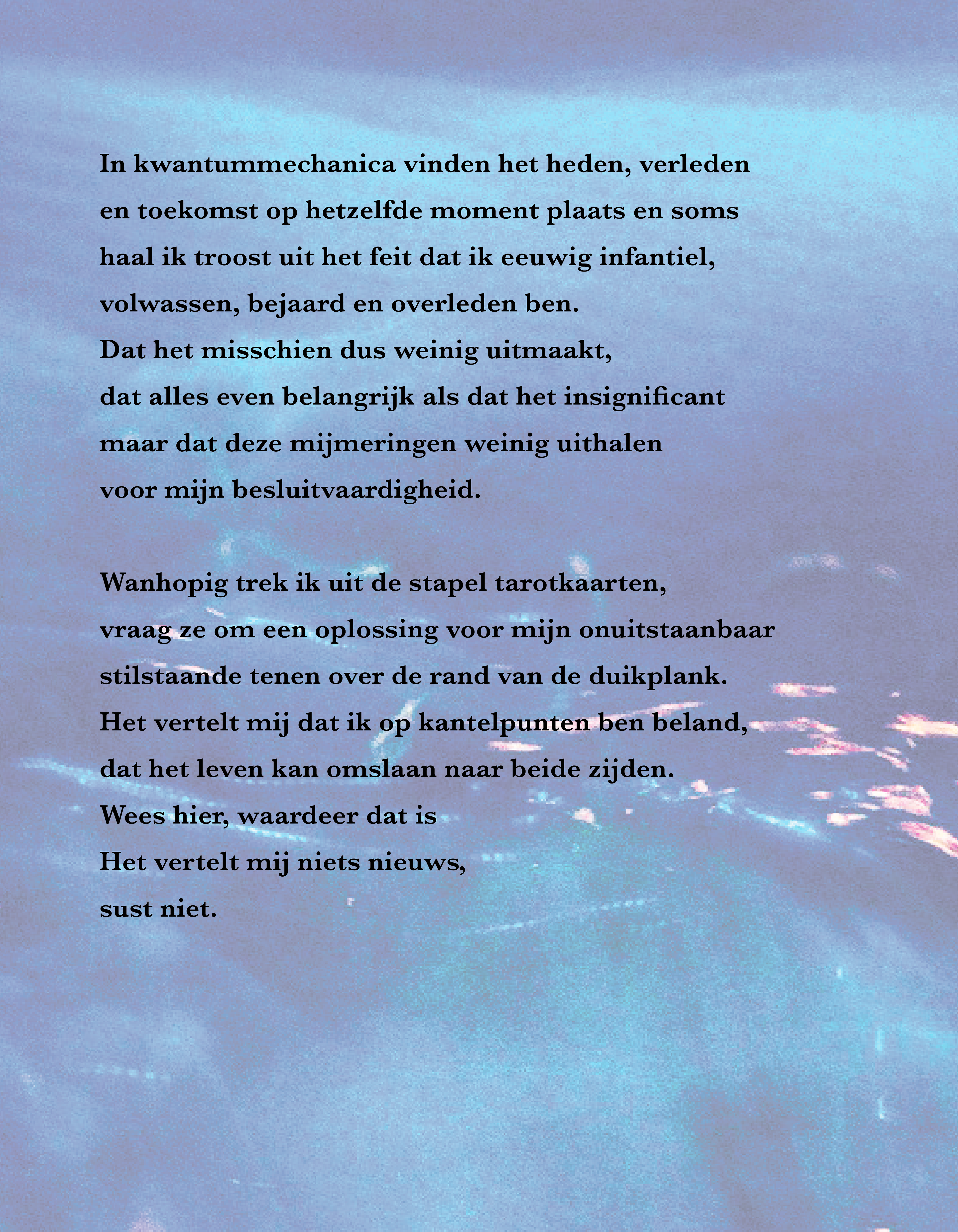 Amber Rahantoknam (1996) is een multidisciplinair kunstenaar die zich beweegt op het snijvlak van poëzie, illustratie en performance. Radicale zelfexpressie loopt als rode draad door haar gehele praktijk. Met haar persoonlijke gedichten onderzoekt ze de tussenruimten van menselijke emoties en behandelt ze thema’s als trauma, vrouw-zijn, ttransformatie en de tijd als ongrijpbaar fenomeen.